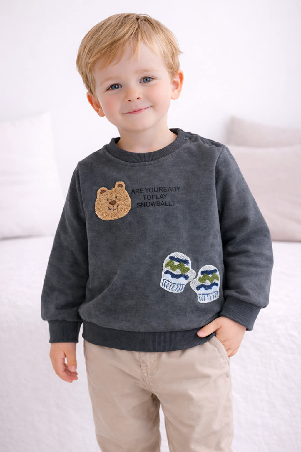 Блуза сива с мечка