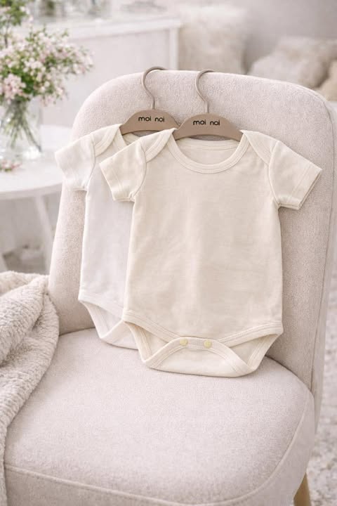 100% памучно боди комплект от 2 части-бяло и бежово.